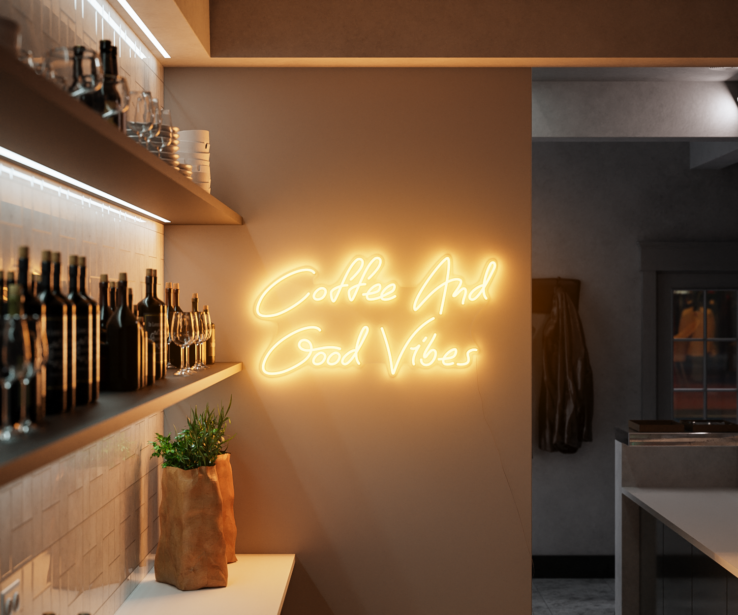 Bring good vibes to your café or home with this "Coffee And Good Vibes" LED neon sign. This stylish addition creates a warm and welcoming atmosphere. Whether it's in the cozy corner of your coffee shop, where people gather to unwind, or in your kitchen, where your day begins, this neon sign adds extra charm and a reminder to enjoy life's simple pleasures with a cup of coffee.