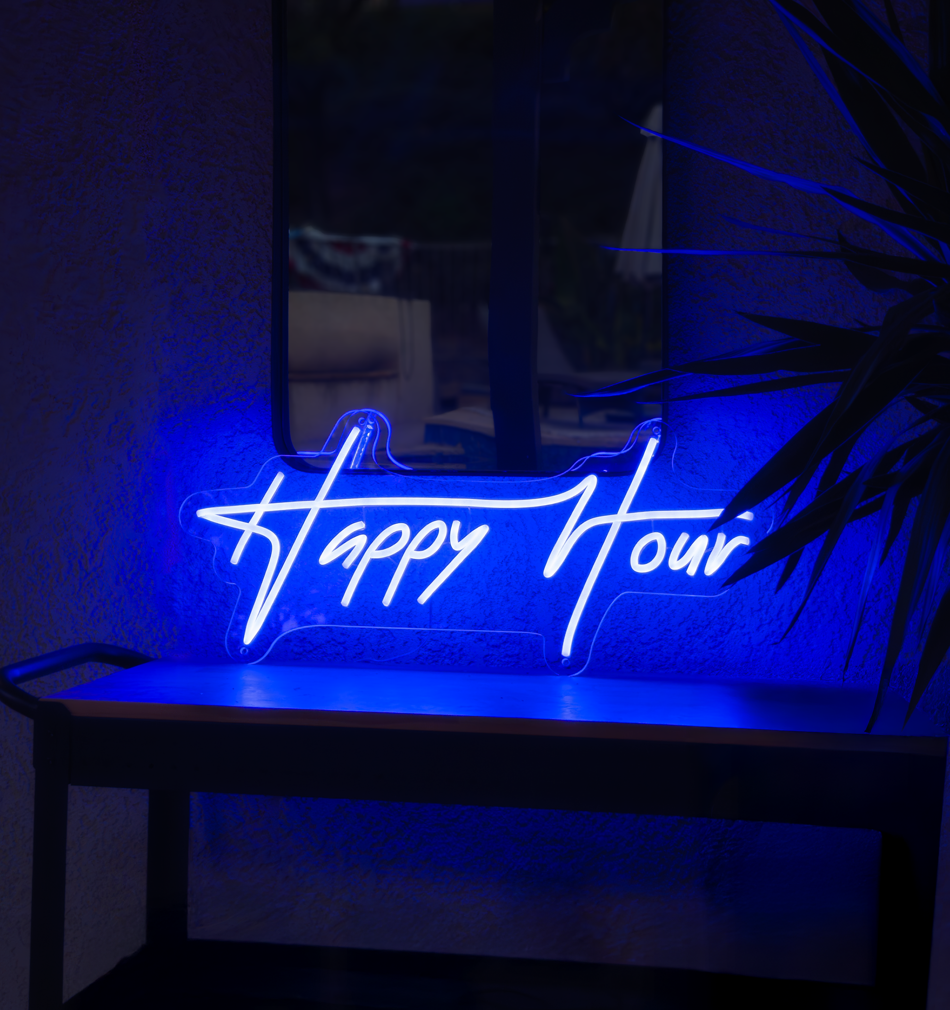 Create the place to be with this 'Happy Hour' LED neon sign. It's the perfect way to light up the night and turn your home into the hottest spot around! No more worrying about finding a parking space or spending over the top prices for drinks- just turn on the neon and relax under the vibrant neon glow. This bright and stylish LED neon sign is sure to make your evenings a blast. Gather your friends and family to celebrate and show off your amazing light-up creation.