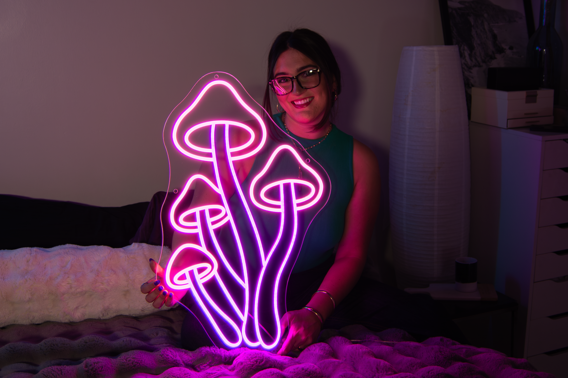 Bring a little wonder into your space with our Magic Mushroom LED Neon Sign. Bathed in vivid neon hues, this playful design adds an instant dash of whimsy—perfect for a bedroom, home bar, or cozy reading nook. Let its glow spark your imagination every time you walk by.